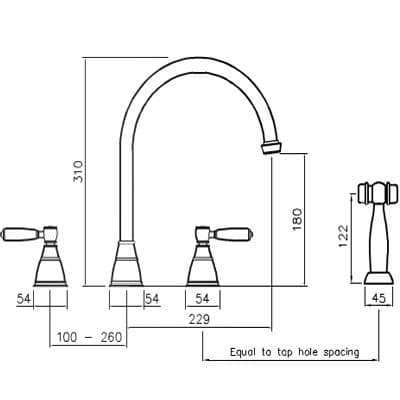 Abode Astbury 3 Part Mixer Kitchen Tap With Independent Hendon Handspray Pewter AT3051