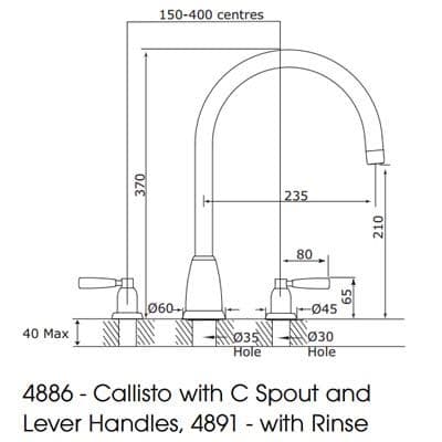 Perrin & Rowe Callisto Three-Hole Mixer Kitchen Tap C Spout With Levers And Rinse Nickel 4891NI