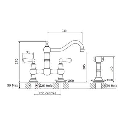 Perrin & Rowe Provence Two-Hole Sink Mixer With Lever Handles And Rinse Chrome 4756CP